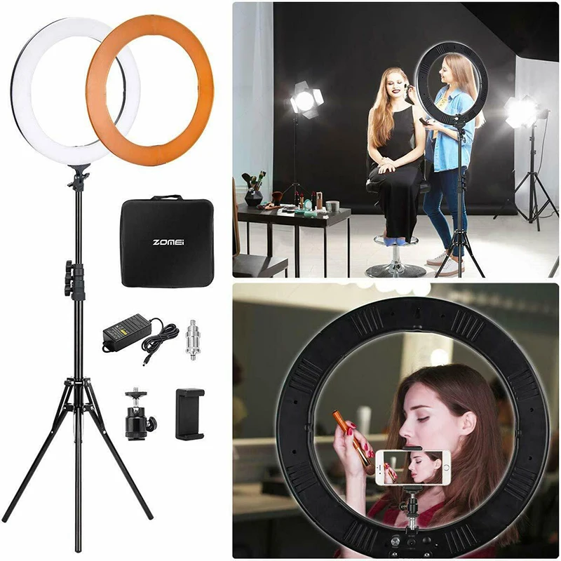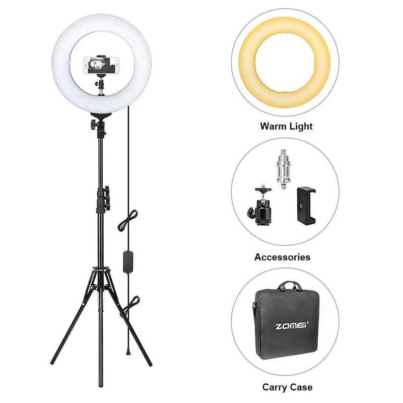 ZOMEI 14" Dimmable LED Studio Ring Light with Tripod Photographic Lighting Ring Light Lamp For Make